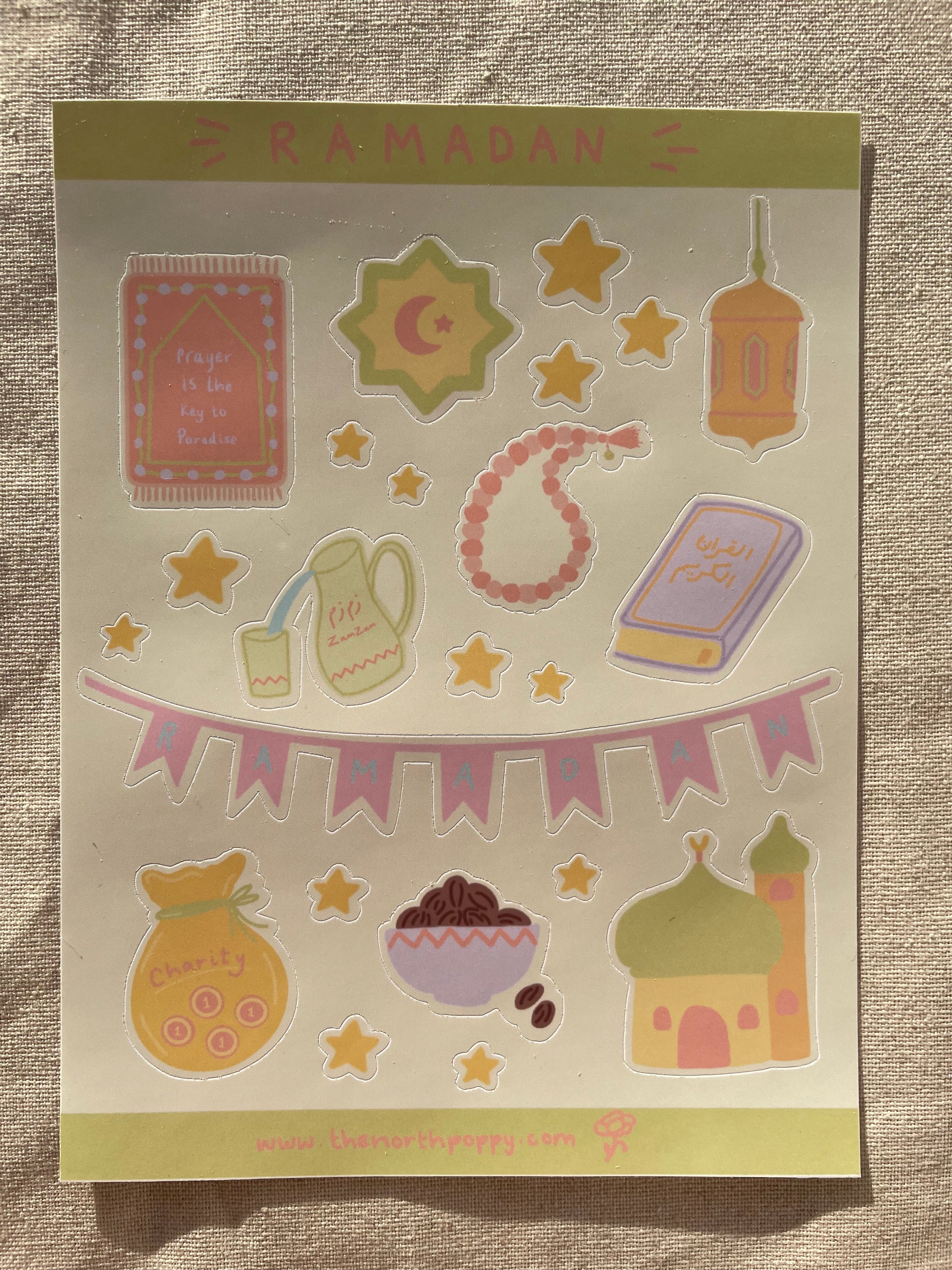 A single Ramadan themed sticker sheet approximately 4.5 x 6", designed for ease and intention.